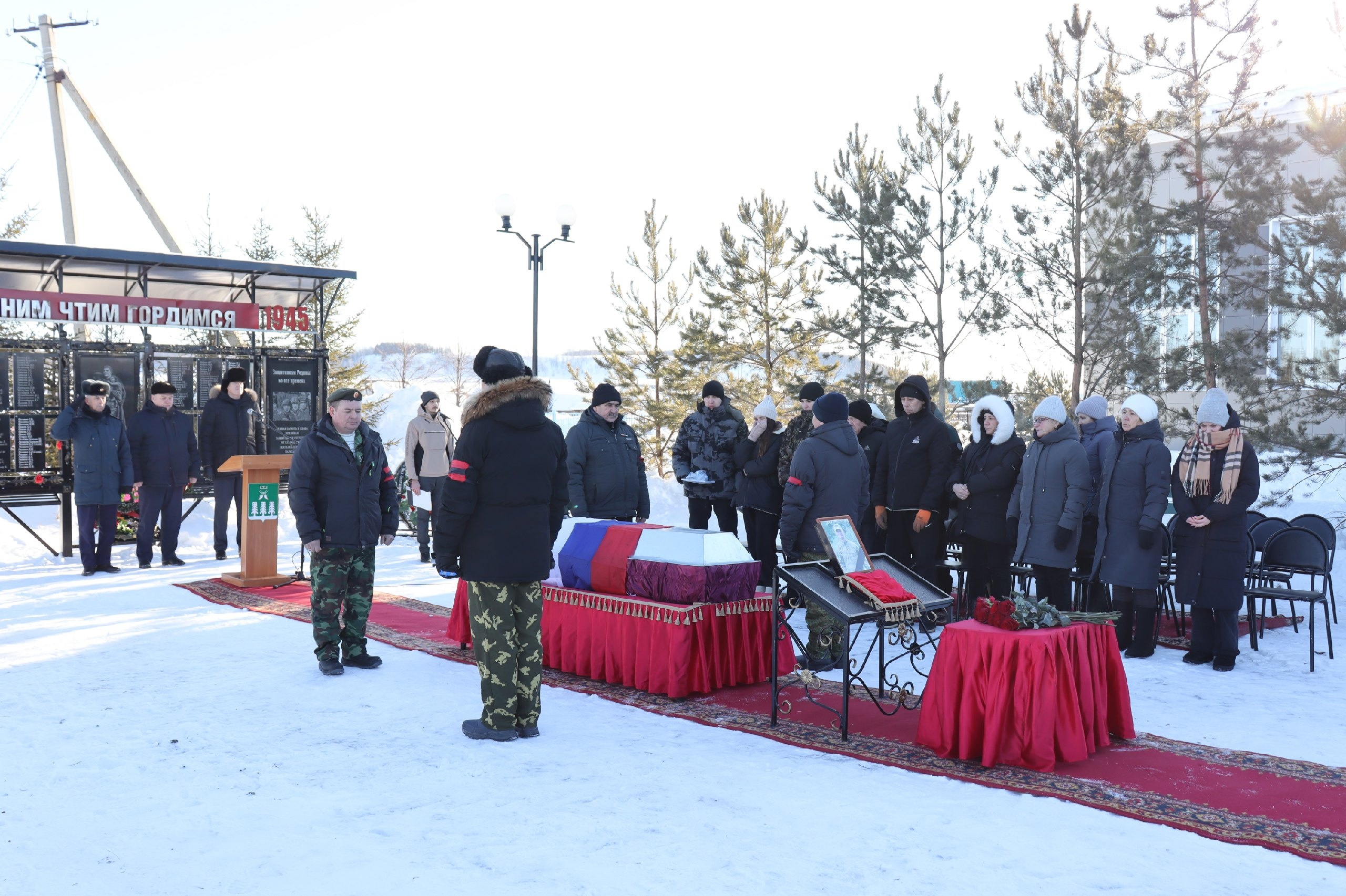 Проститься с бойцом собрались его родные и близкие, ветераны боевых действий, учителя, односельчане и все неравнодушные жители. С прощальным словом на траурной церемонии от имени Главы Республики Башкортостан Радия Хабирова выступил депутат Государственного Собрания — Курултая РБ Александр Андреев.